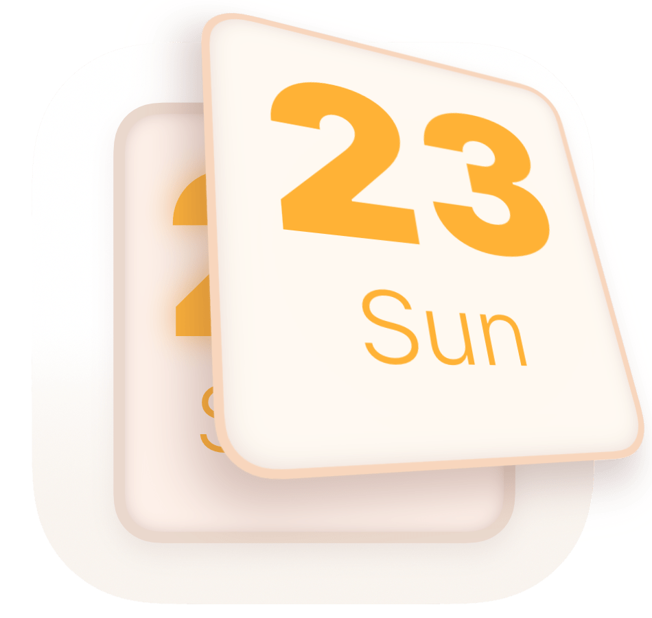 Recurring events will show how often they happen in an easily readable form (e.g. every 1 month) and colored dots under each day can help you see future holidays and free time at a glance.
